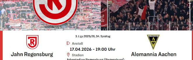 Am Freitag, 17. April 2026, wird der Fanclub Tickets für das Heimspiel des SSV Jahn Regensburg gegen Alemannia Aachen anbieten.
