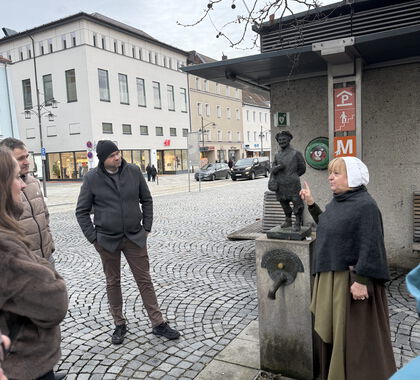 Im Anschluss begab sich die Gruppe nach Deggendorf, wo eine historische Stadtführung auf dem Programm stand. Die „Knödlwerferin“ verstand es, mit viel Humor und Fachwissen die Geschichte der Stadt lebendig werden zu lassen. Anschaulich schilderte sie historische Begebenheiten und regionale Besonderheiten und sorgte damit für einen unterhaltsamen und zugleich informativen Rundgang durch die Altstadt.