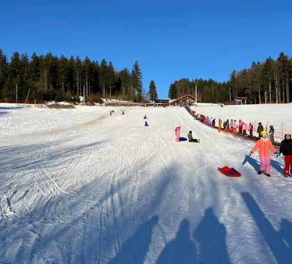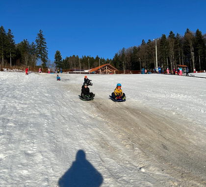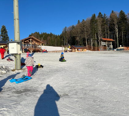 Der Steinberg in Langfurth zeigte sich von seiner schönsten Seite: Super Piste, klare Luft und perfekte Rodelverhältnisse sorgten für ideale Bedingungen. Mit großer Begeisterung sausten die Kinder den Hang hinunter, lieferten sich kleine Wettrennen und feuerten sich gegenseitig an.